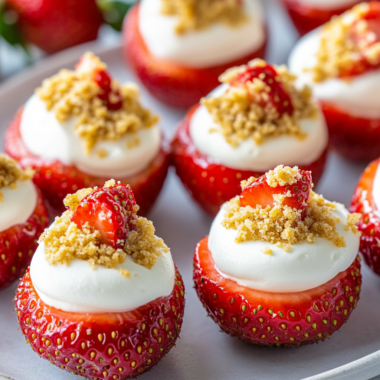 Rich and creamy cheesecake filling nestled in fresh, juicy strawberries creates a delightful balance of flavors and textures, making these cheesecake deviled strawberries an irresistible addition to any gathering or special occasion.