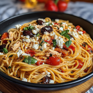 Savory Chicken Feta Pasta Mediterranean blends tender chicken with tangy feta and vibrant vegetables, creating a dish that is as inviting for a casual dinner as it is for a special gathering, delivering a delightful balance of flavors and textures that will enchant any palate.