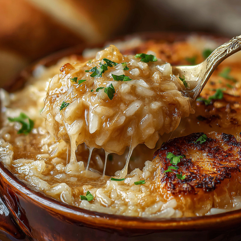 Comforting Chicken French Onion Soup Rice Dish