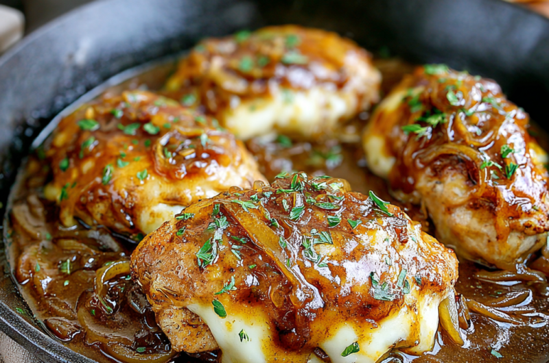 Rich and savory, French Onion Chicken combines the delectable flavors of caramelized onions and melted cheese with juicy chicken to create a hearty meal. This dish offers a gourmet experience without the need for complex techniques, making it perfect for any home cook.