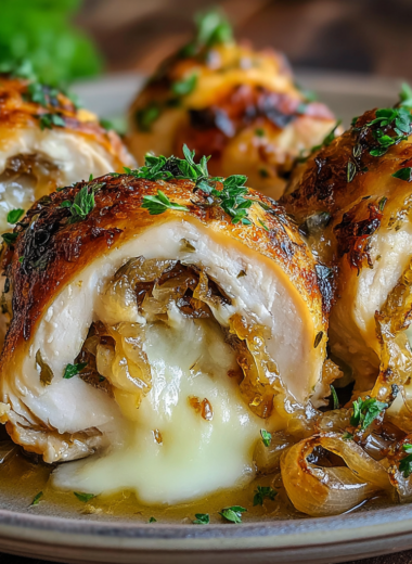 Cheesy Stuffed Chicken Rolls with Caramelized Onions