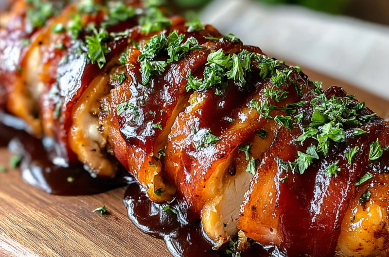 Bacon-wrapped chicken is a delightful dish that never fails to impress. This recipe combines juicy chicken breasts, crunchy bacon, and a tangy BBQ glaze, creating layers of flavor that will tantalize your taste buds.